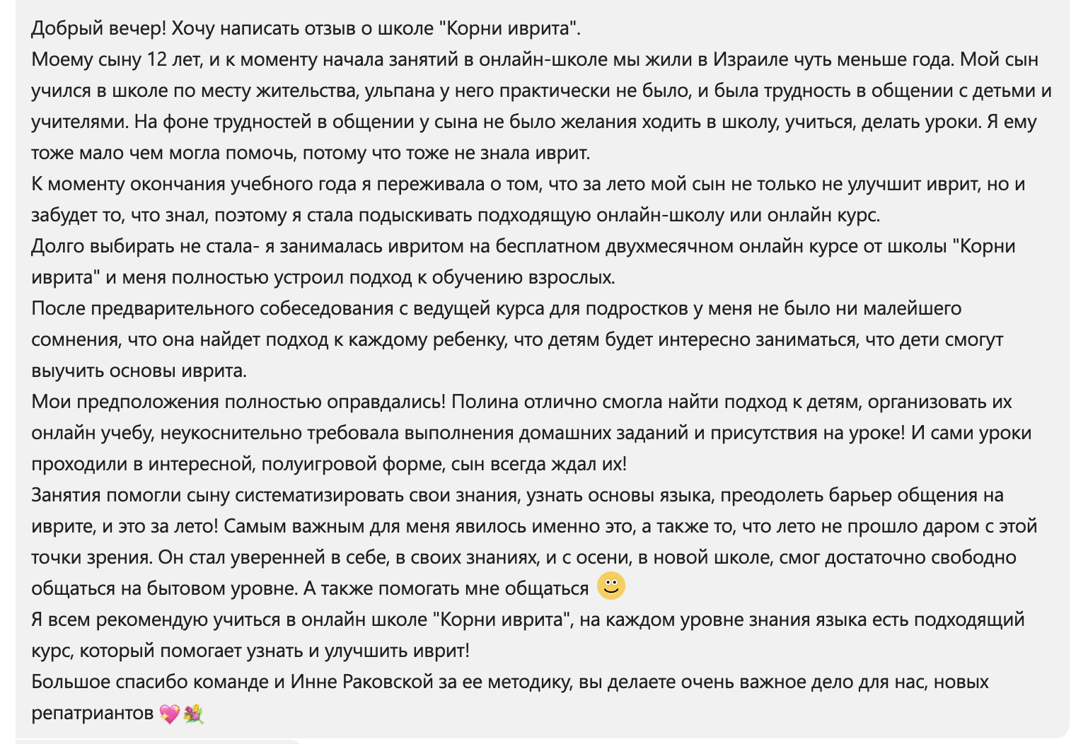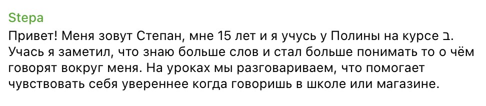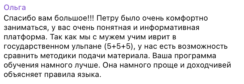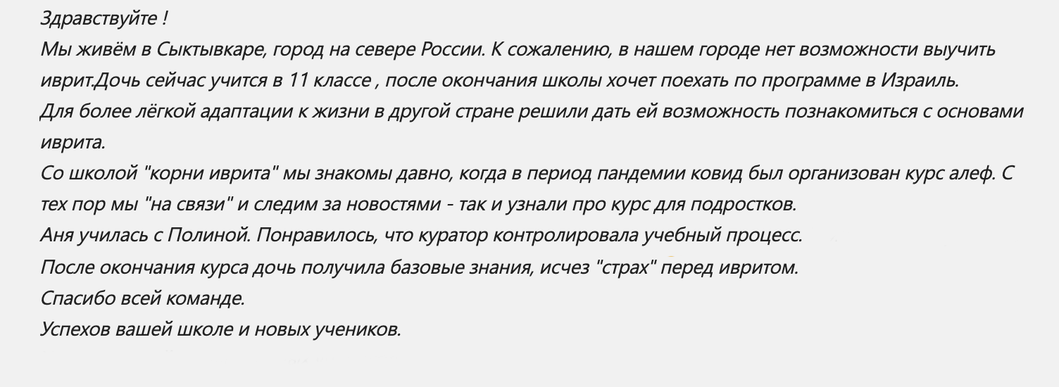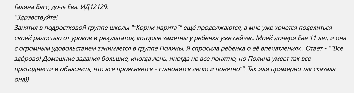 «Меня научили видеть логику иврита по методике обучения «Корни Иврита», и он перестал казаться мне сложным, — а так думают более 12000 наших выпускников.