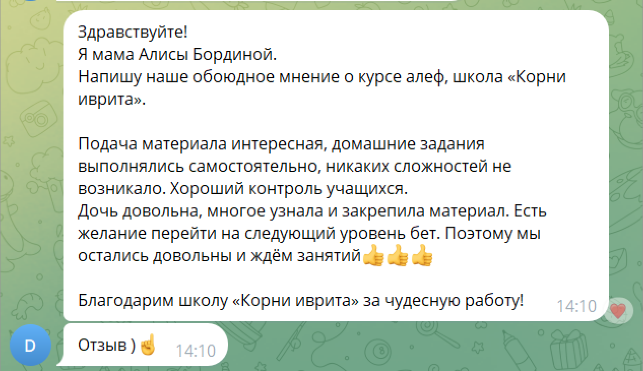 То мы сразу запишем вашего ребенка в ближайшую учебную группу, соответствующую его уровню иврита